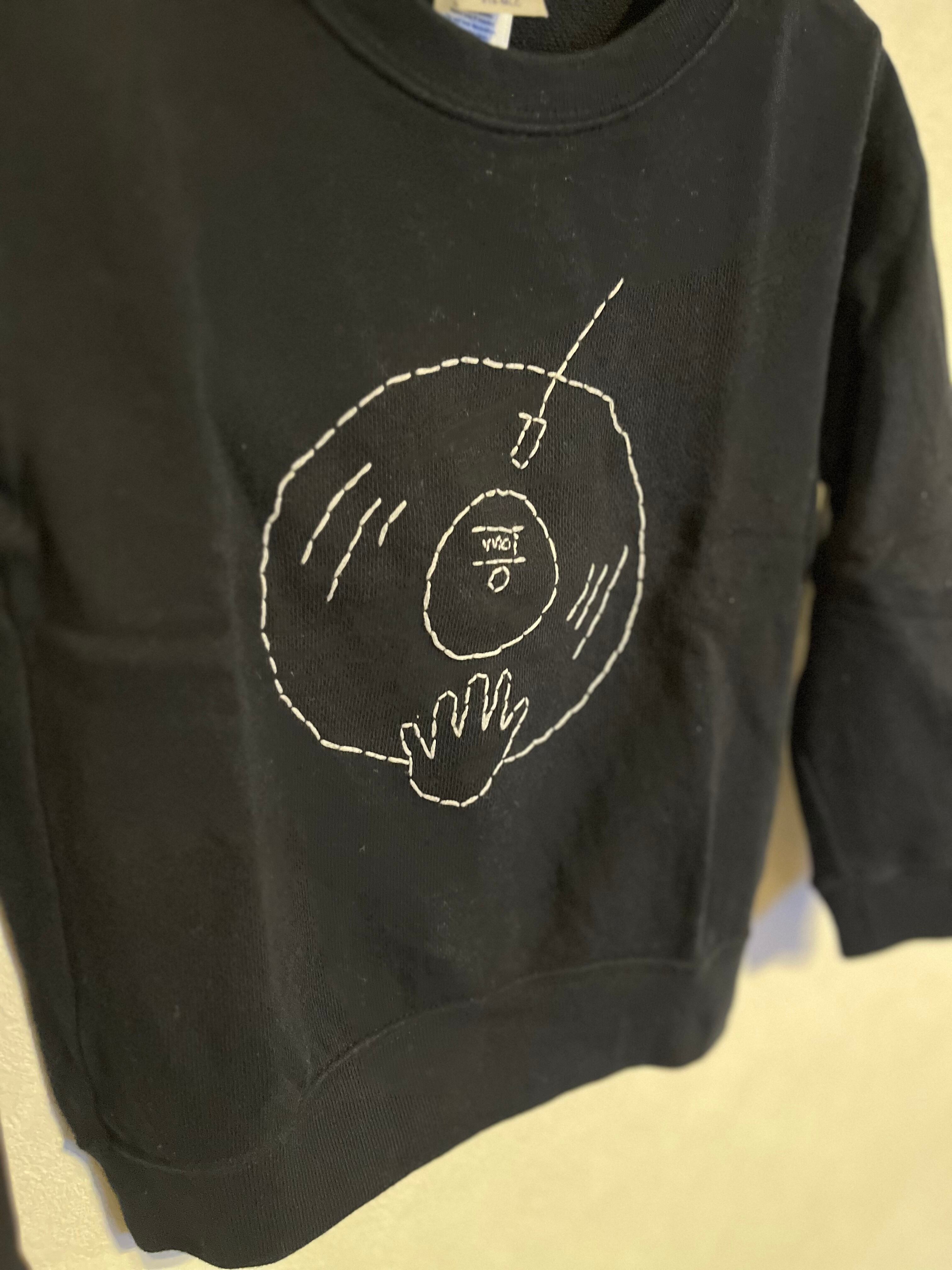 総手刺繍でDJプレイを刺繍しました。
